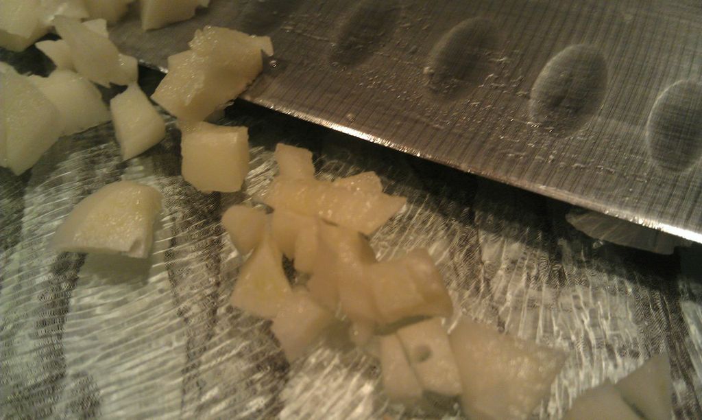 While the butter melts, chop up about 1/2 a yellow onion...